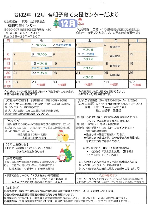 12月21日(月)~1月8日(金)の午前中利用は